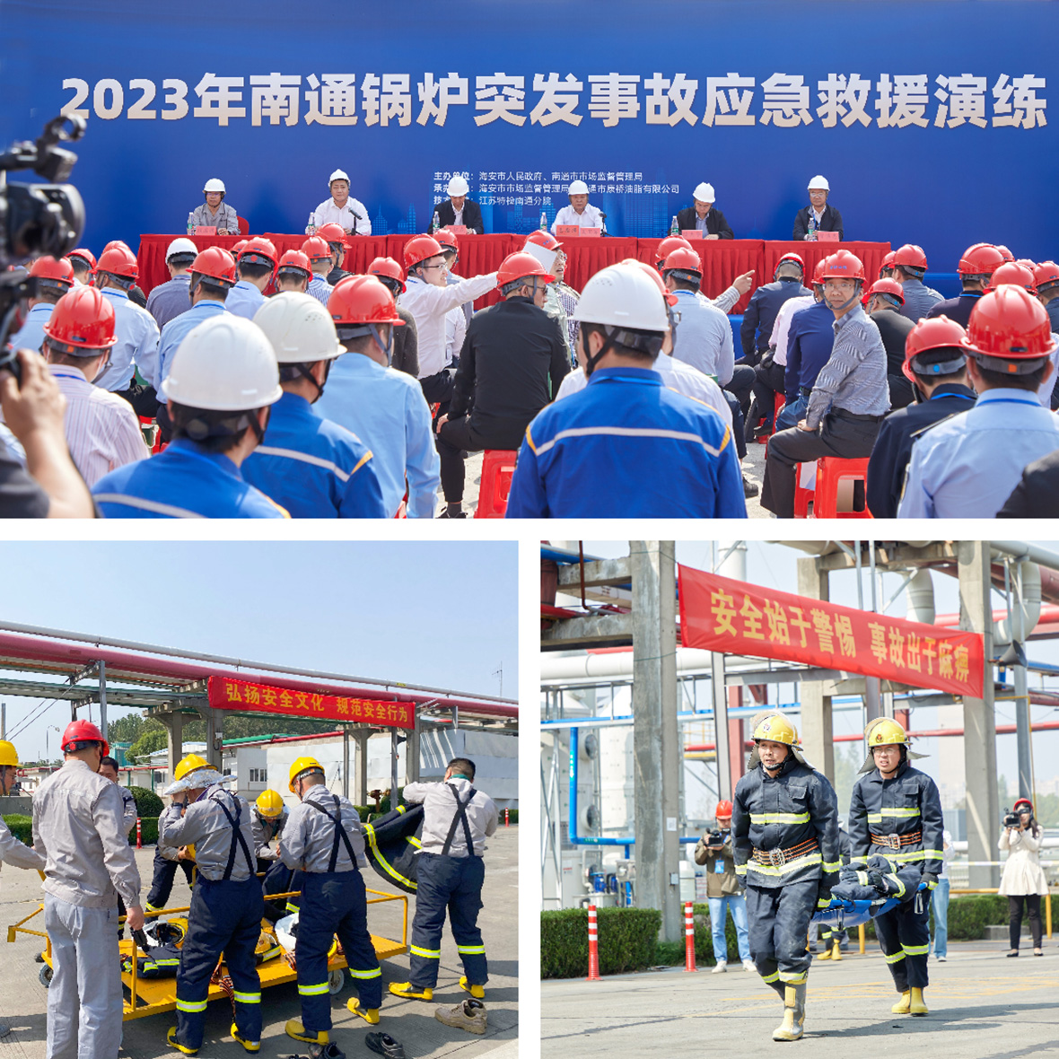 安全生產(chǎn),重如泰山。金秋10月17日,南通市2023年鍋爐突發(fā)事故應急救援演練觀(guān)摩會(huì )在我司拉開(kāi)序幕。演練模擬一臺導熱油鍋爐發(fā)生故障,引起導熱油泄漏遇靜電起火事故。演練設置為七個(gè)階段,充分利用現代應急管理信息化技術(shù),依托海安市鍋爐雙控管理平臺,采取推演與實(shí)戰相結合的方法,通過(guò) “制度化管理、實(shí)時(shí)化監控、自動(dòng)化阻隔、現代化救援”等手段,開(kāi)展全要素、全過(guò)程、全指揮鏈的一次事故應急救援演練。